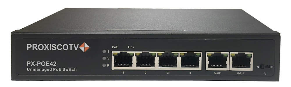 PX-POE42 коммутатор PoE 4+2 порта, металлический корпус